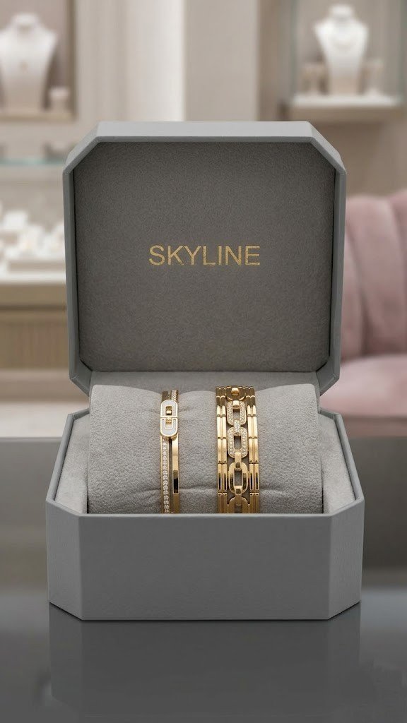 Define tu estilo con el exclusivo set de brazaletes Skyline. Una combinación perfecta entre la calidez del oro y el brillo eterno de los cristales finamente engastados.